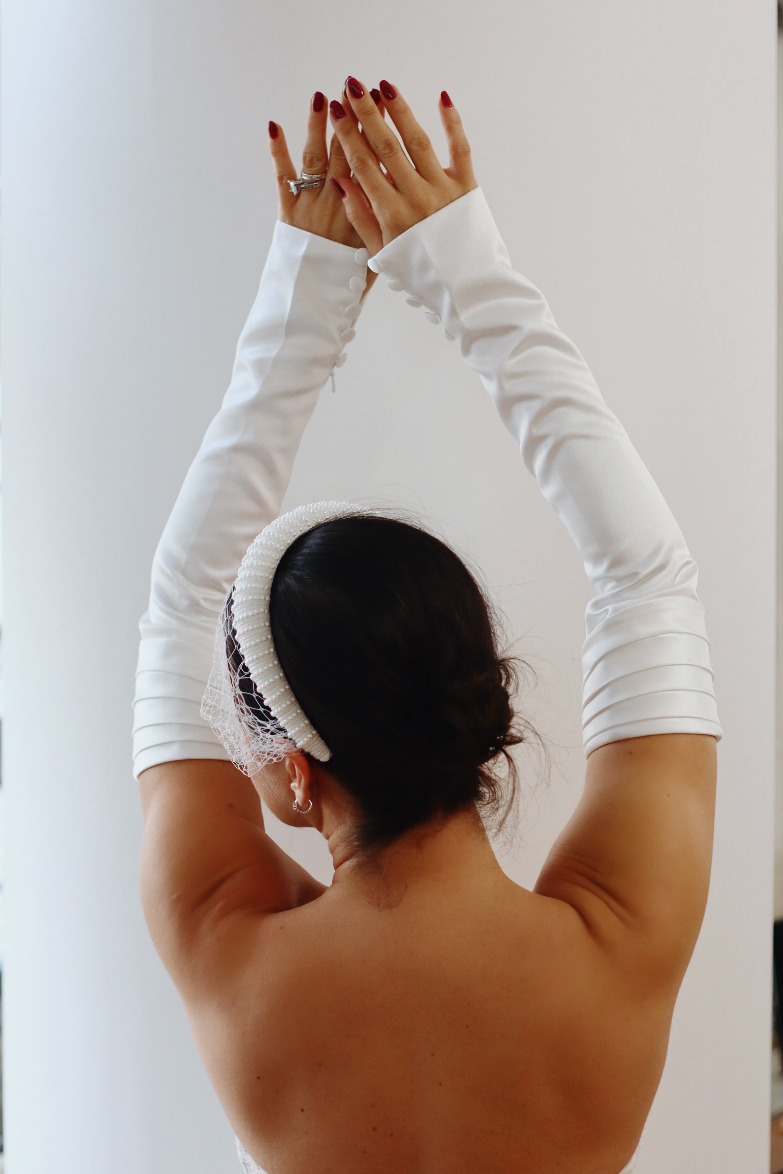 Elevate Your Bridal Look with Velo Bianco's Detachable Satin Bridal Sleeves