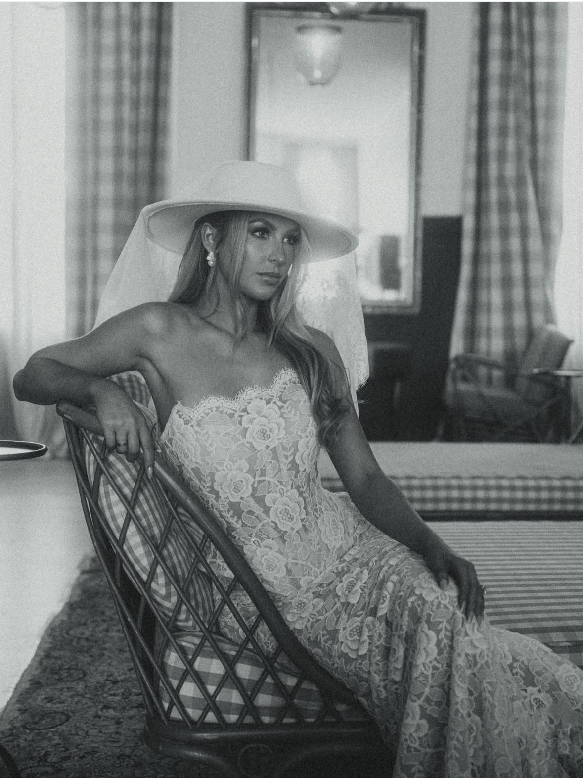 White Bridal Hat with Lace Veil