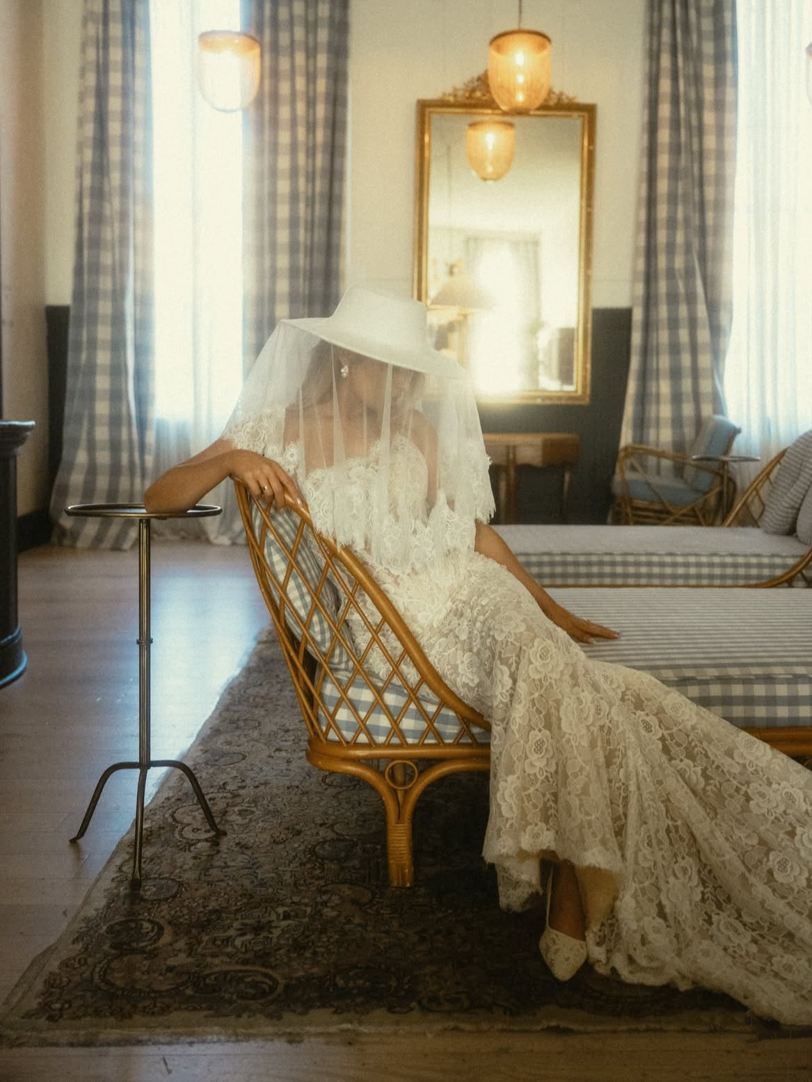 - Steam gently to remove wrinkles in the veil; avoid ironing directly on lace.