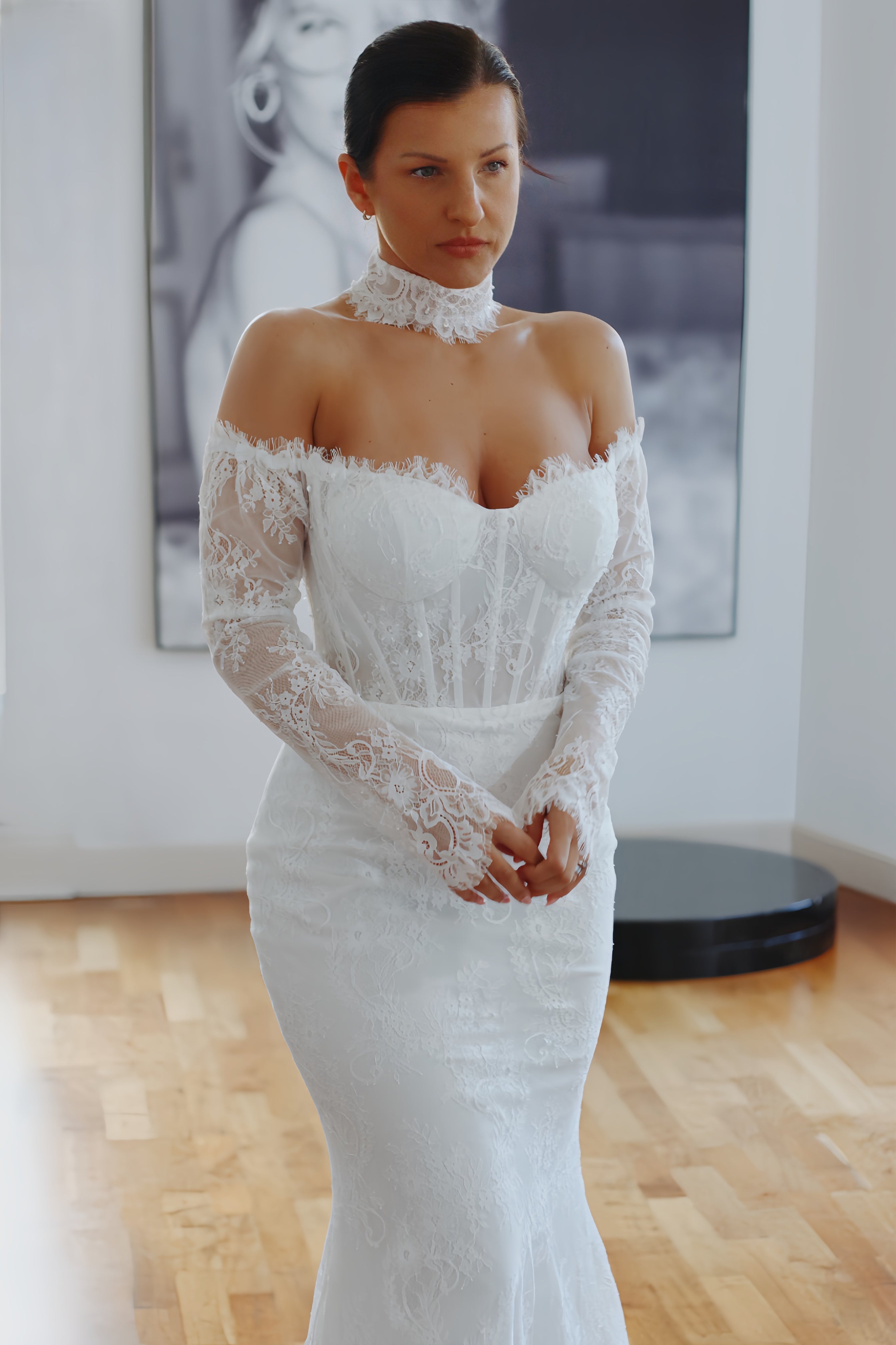 Our wedding dresses are available as made to measure for an additional cost. You can select this option before checkout. Select this option and your personal assistant will email you once your order has been processed, requesting your specific measurements. Your dress will then be custom made by our seamstresses according to the measurements provided.