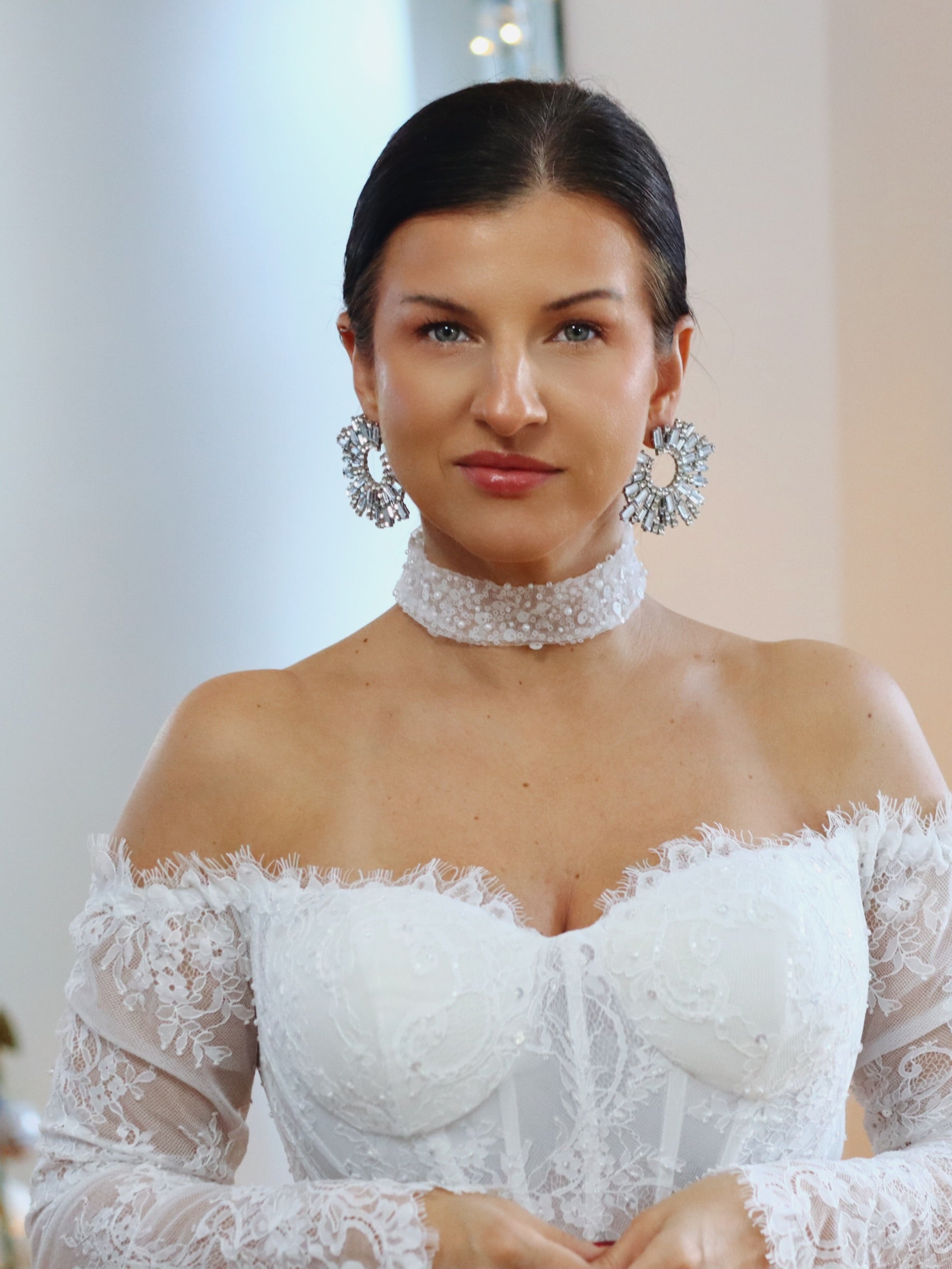 Elevate your bridal look with this exquisite detachable sequin and pearls choker, a timeless blend of elegance and romance. Designed for modern brides who love a touch of vintage charm, this delicate accessory is crafted from intricately beaded tulle with pearls, offering a soft, feminine touch to your wedding ensemble.